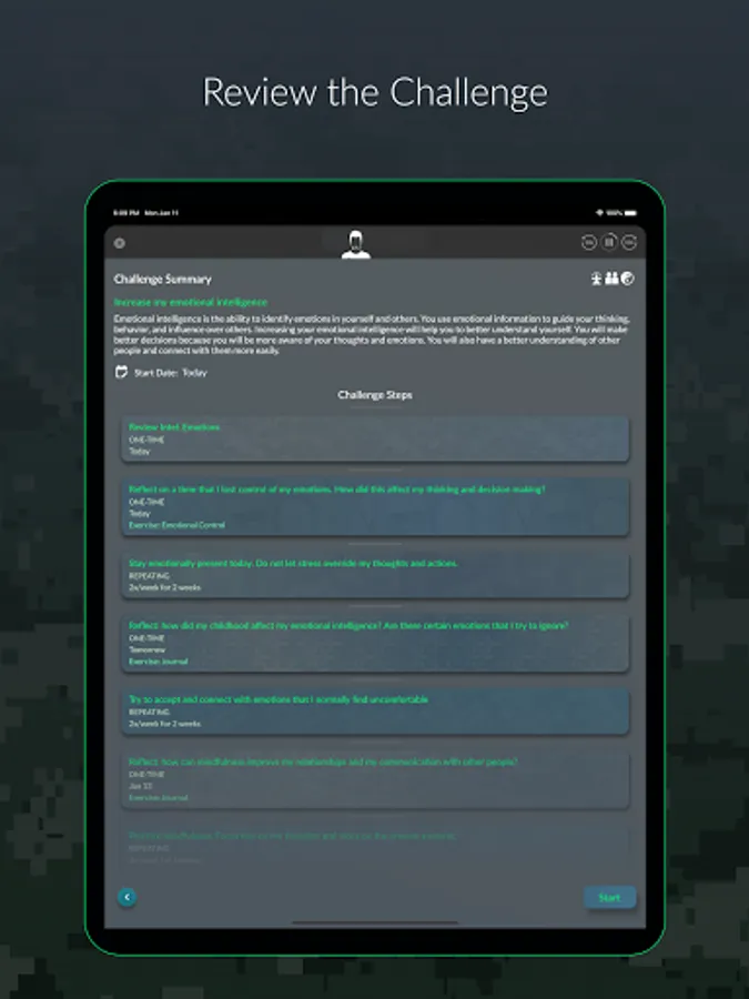 Wellscape also offers a suite of self-reflective Exercises that help you analyze and improve on situations or interactions with people around you. These Exercises can be completed either through typing your answers or recording audio responses. Examples of Exercises include: