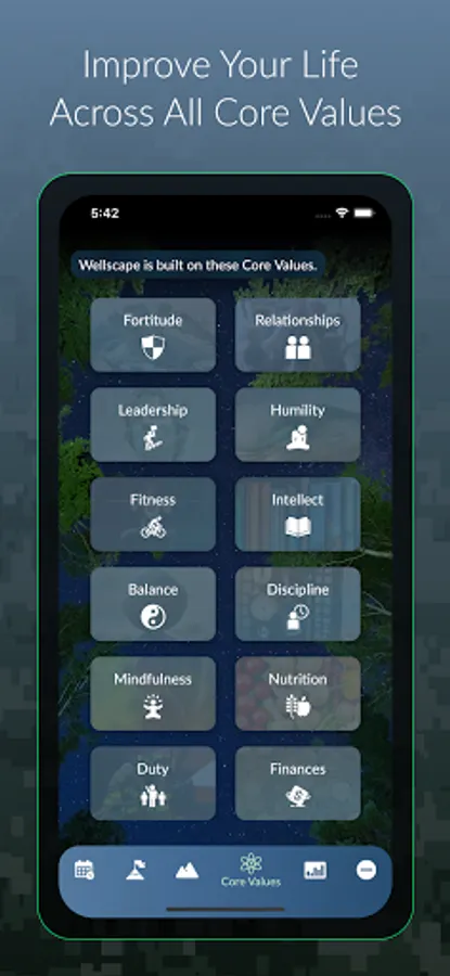 Wellscape is built around 12 Core Values that represent the key aspects of personal and professional life that you need to improve in order to be successful and fulfilled: