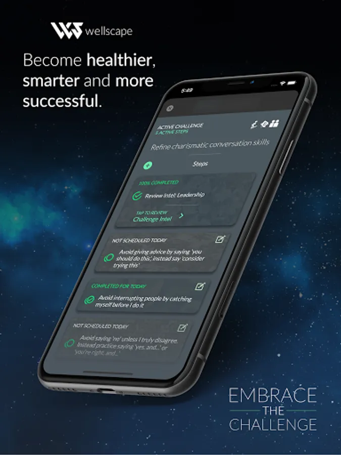 Wellscape is a digital life coaching and self-improvement platform built on the knowledge that embracing life's challenges and adversity are the best ways to grow and unlock personal potential. Everyone has the capacity to dig-deep and grind toward self-improvement. Taking ownership and facing life’s challenges head-on is truly the only way to build a healthier, more successful and fulfilling life. Through constantly evolving Challenges and Exercises, Wellscape pushes you to become a better you.