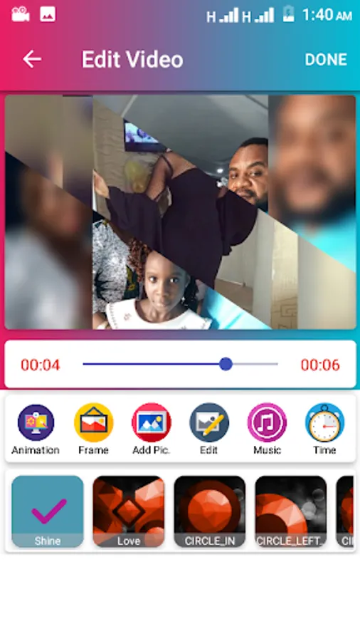 ☆ Add music to the slideshow, easily select the music you love to add to the video.