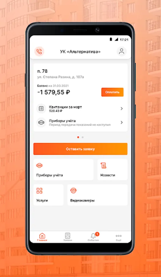 Mobile application for residents of the management company "Alternativa-Yekaterinburg"