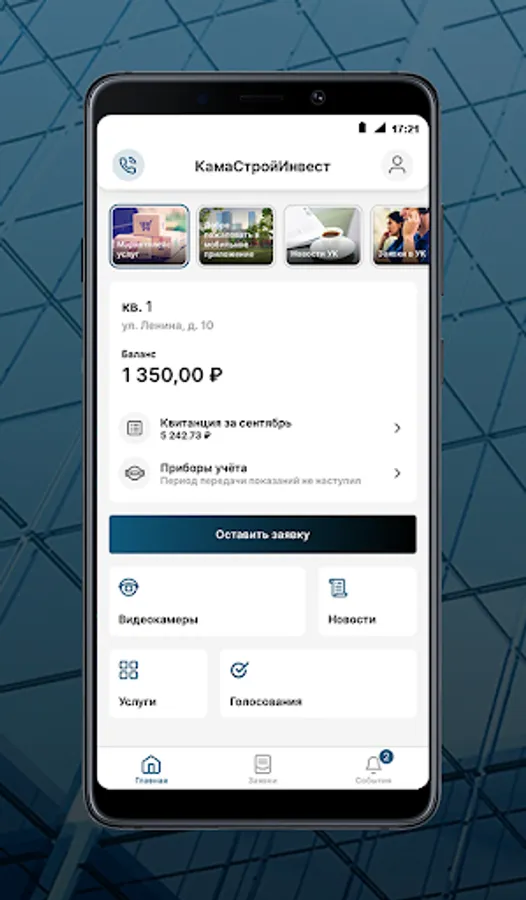 With the help of the application from the management company "KamaStroyInvest" you can: