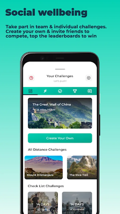Take part in fun and engaging team and individual challenges. Create your own and invite friends to compete, top the leaderboards to win.