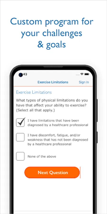 Our health assessment builds a customized beginner workout plan to reach your health goals. Build strength, endurance, flexibility & balance - real results designed for real people, not fitness models or athletes. Our app helps you start safely - and keep getting stronger for life.
