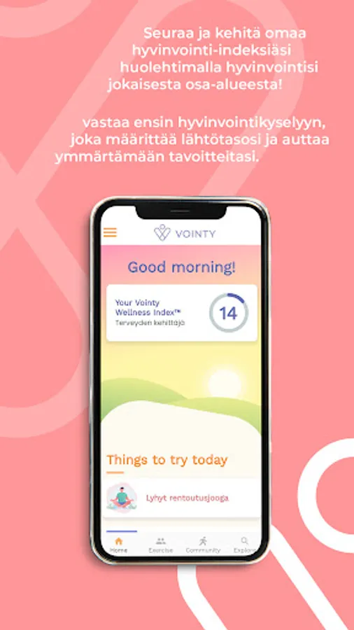 Vointy on uusi kokonaisvaltainen hyvinvointisovellus, joka tukee kehon ja mielen hyvinvointia yhteisöllisesti.
