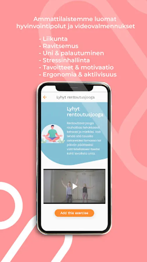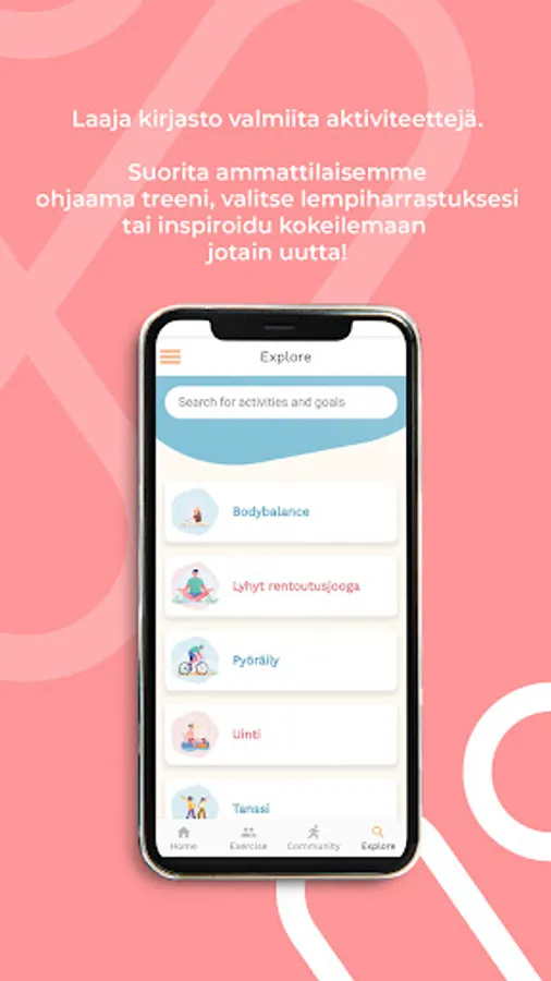 Voit kehittää ja seurata omaa hyvinvointimittariasi ja kokeilla uusia aktiviteettejä, tai esimerkiksi jumpata kotona ammattilaistemme luomien videoiden ohjeistuksella.