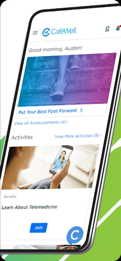 Great job! You are one step closer to achieving your health and wellbeing goals. Download this free app to access your company-sponsored wellbeing programs including all the resources and benefits available to you. As the companion app to CafeWell.com, this mobile experience is the sidekick you need to track your activity, stay motivated and get the support to be your best self. Discover a seamless, on-the-go experience right at your fingertips when you need to: