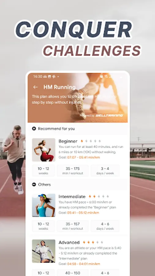 This app provides a different training plan for beginner - 5K, 10K,... giving beginners challenges and endurance tests for experienced runners