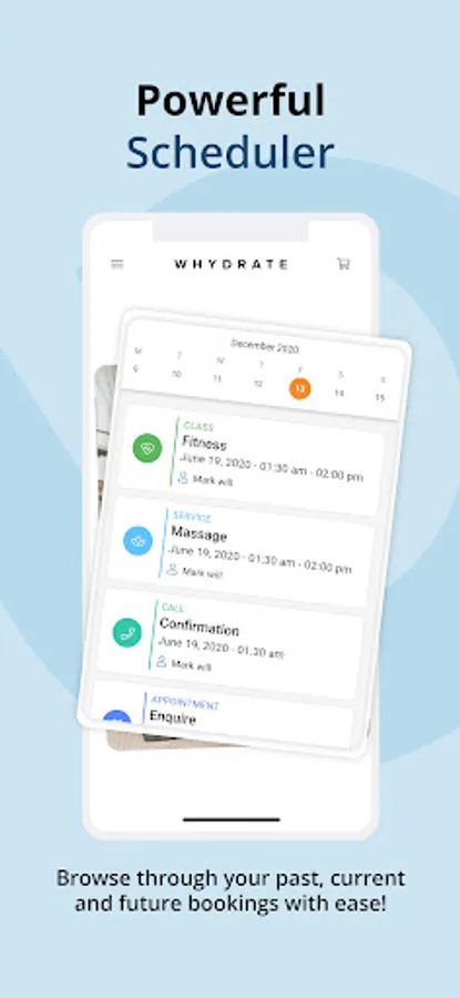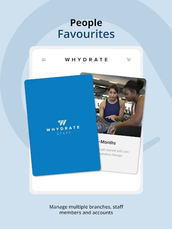Equip your staff with a powerful tool for the management and scheduling of their shifts, activities and appointments. wHydrate staff app allows your staff more mobility and efficiency in managing your customers.