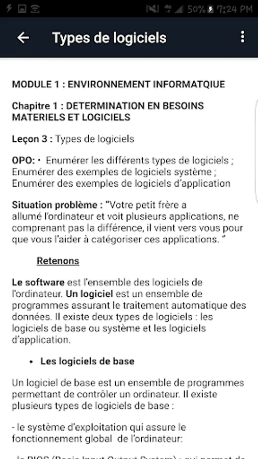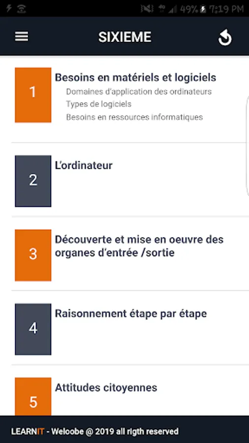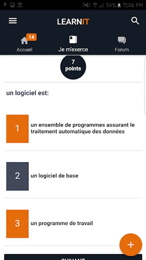 In fact, the topic I am practicing contains a set of questions answered structured by chapter and by class. The learner chooses the chapter of his class on which he wants to be evaluated and receives questions in the form of multiple choice questions.