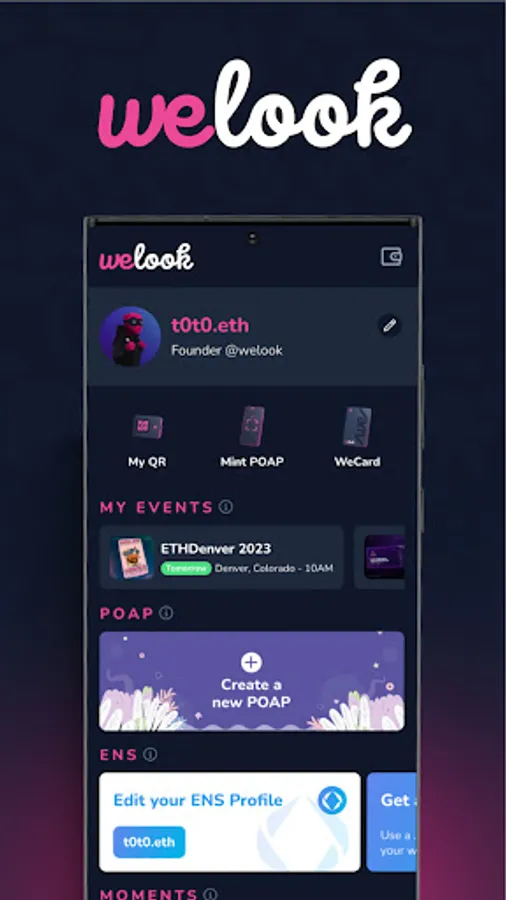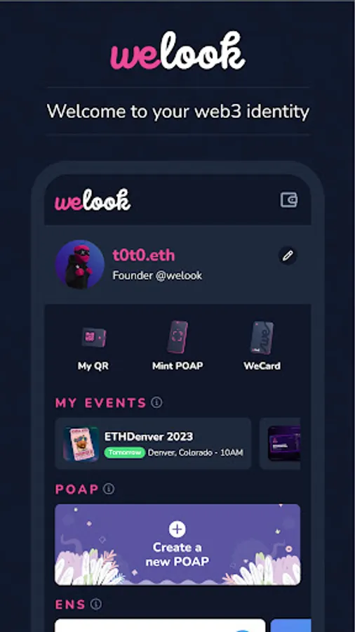 Manager your unique web3 social profile, own your name, follow others, organize your on-chain digital badges and NFTs. Access events with NFT tickets, upload live moments and drop your own custom POAP in less than 5 minutes. Welook is the best social app for web3, granting you the right to show how you want to look with blockchain assets.
