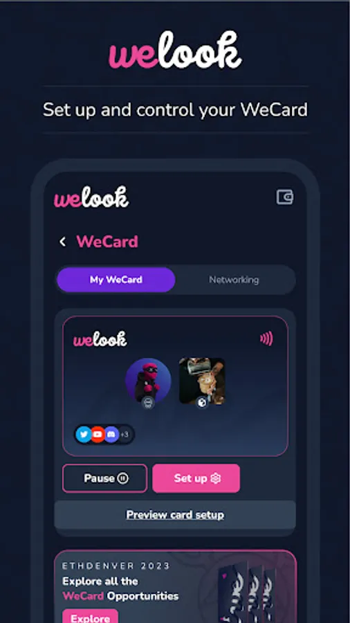 Look beatiful. Welook allows you to share a crisp, polished personal profile card when sharing your links in social media. Request the WeCard, your last personal card you will ever use, to share contact data IRL with a single tap thanks to NFC.