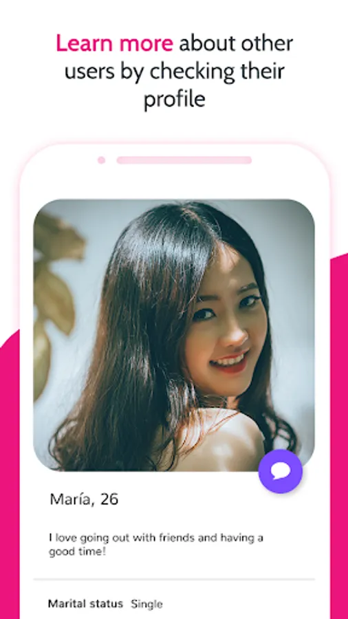 Our app will make very easy meeting new mature people, finding a couple, getting boyfriend and girlfriend, the fastest way for start a relationship with your perfect match today. If you want an asian dating app, this is the perfect for you.