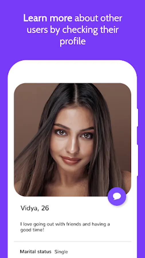 Our app will make very easy meeting new mature people, finding a couple, getting boyfriend and girlfriend, the fastest way for start a relationship with your perfect match today. If you want an indian dating app, this is the perfect for you.