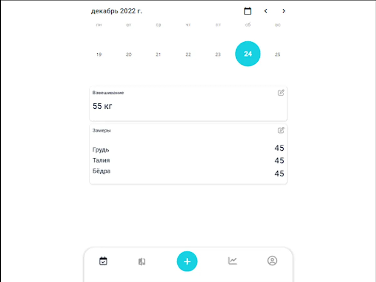 An application for fitness trainers and regular gym goers that helps to track changes in weight, body measurements and carry out photo control by comparing "Before" and "After" photos