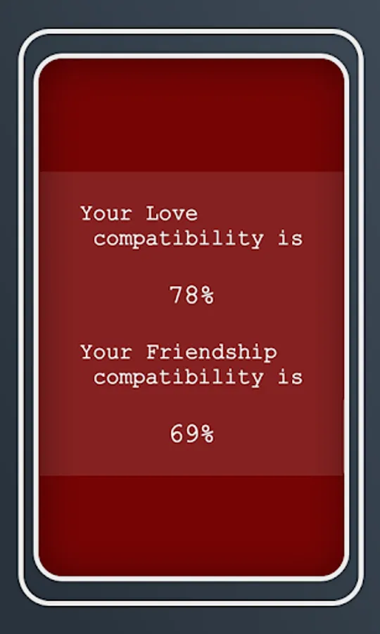 You just have to enter your name and your friend's name or lover's name and you get the friendship and love percentage between the two of you.