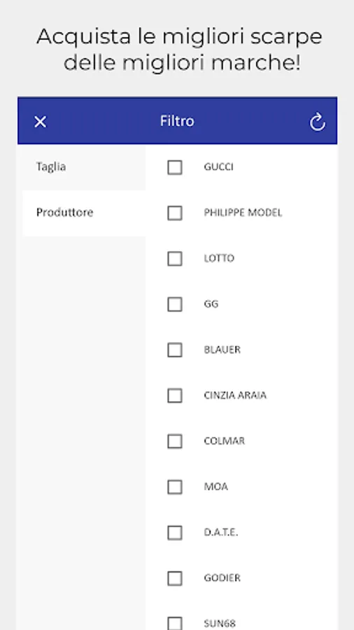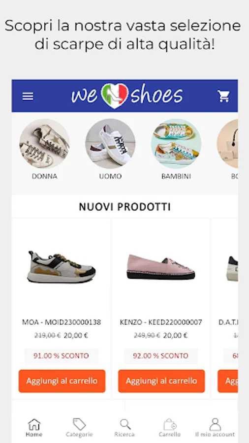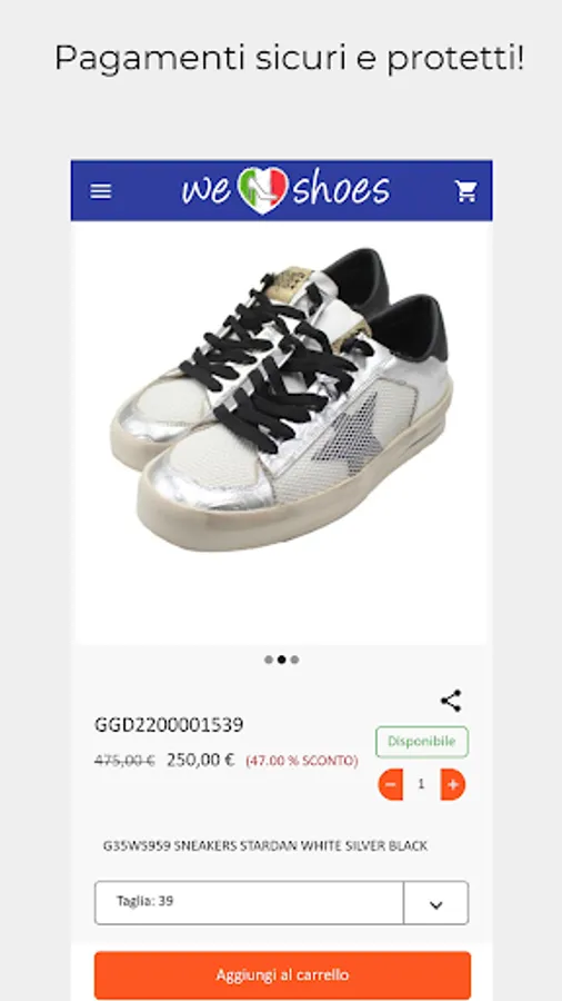 Benvenuti nella nostra app di shopping di scarpe di alta qualità per uomo, donna e bambini. Offriamo un'ampia selezione di scarpe delle migliori marche per soddisfare le esigenze di stile e di comfort di tutti i nostri clienti. Grazie alla nostra spedizione veloce in tutto il mondo, potrete godervi i vostri acquisti ovunque vi troviate. Il nostro sistema di pagamento sicuro vi permette di effettuare acquisti in modo affidabile e protetto. Siamo impegnati a fornire un'esperienza di acquisto facile e piacevole per tutti i nostri clienti. Scarica la nostra app e inizia a scoprire la vasta gamma di scarpe di alta qualità a disposizione!
