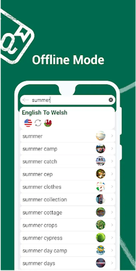 • Both offline and online translation – You can use English to Welsh Dictionary app even when you are not connected to the internet.