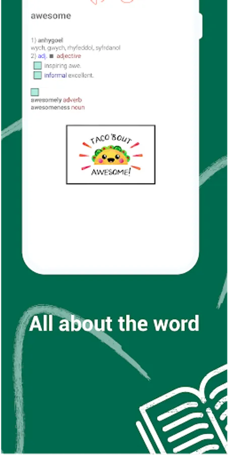 • Offers synonymous or phrases containing the word you are looking for - this function helps to enrich your word stock with many words. Besides, there is also auto correction.