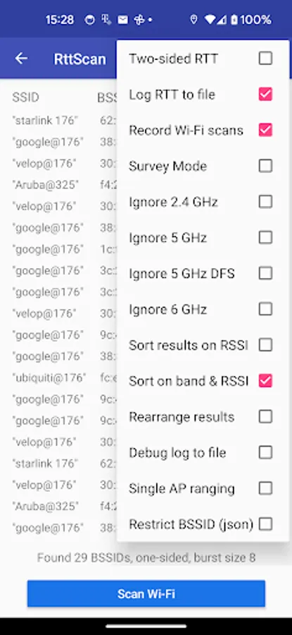 Use WiFi Scans to determine properties of nearby Wi-Fi access points (APs), then estimate the distance to them using two-sided round-trip-time (RTT) if they support IEEE 802.11mc protocol, or,using one-sided RTT if they do not. Can be used to estimate the offset in RTT measurements in order to improve the accuracy of indoor localization with apps such as FTMRTT and WiFiLocator.