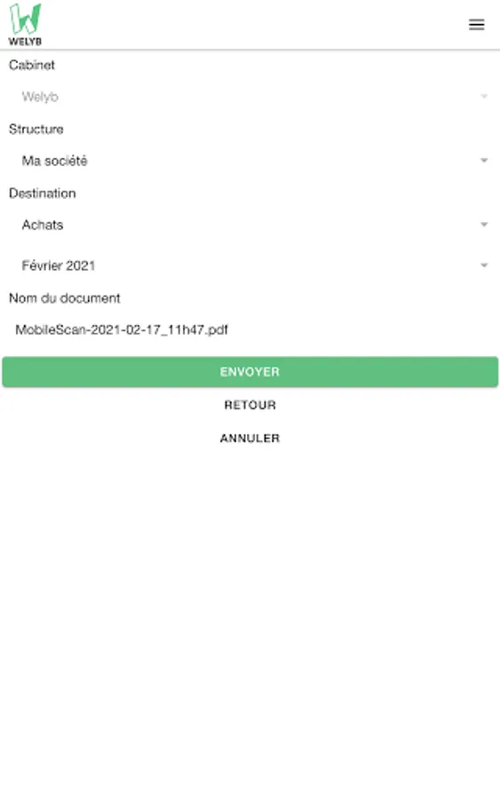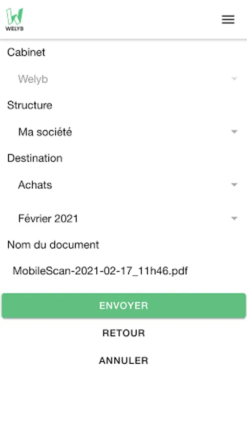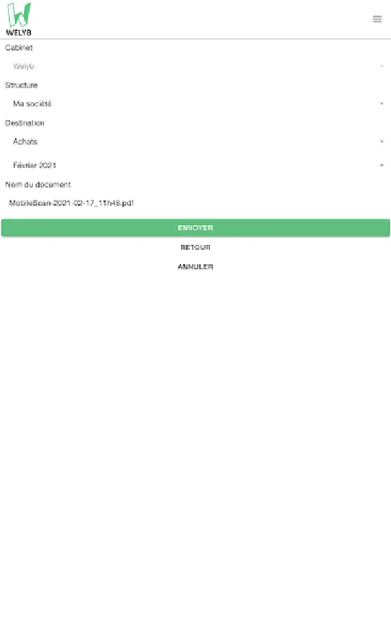 Thus, the mobile application presented here allows the user to scan his invoices from his iPhone and send them directly to the platform. The documents are then stored on the GED of the desired company.