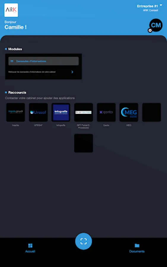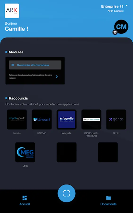 The% AppName% application allows users to scan their documents from their smartphone and send them directly to the platform.