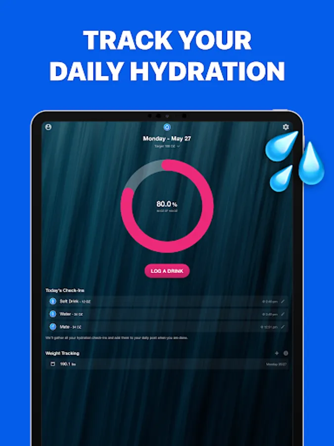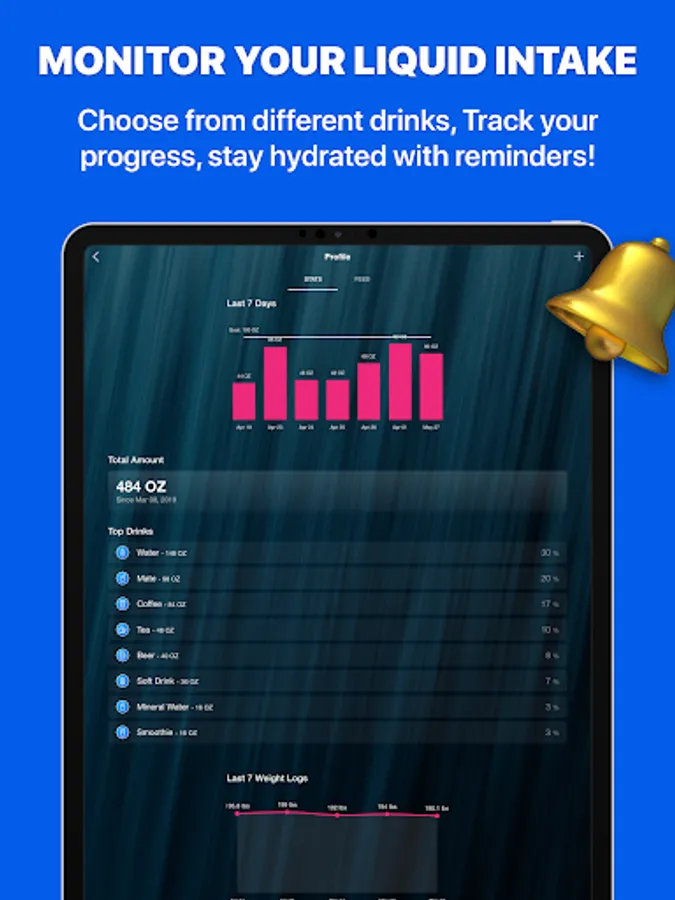 Waten offers a super friendly interface to help you focus on your healthy liquid intake habit. You can track different drinks, get reminded to stay hydrated and keep track of your daily liquids intake. Now is easy to stay healthy and hydrated with Waten!