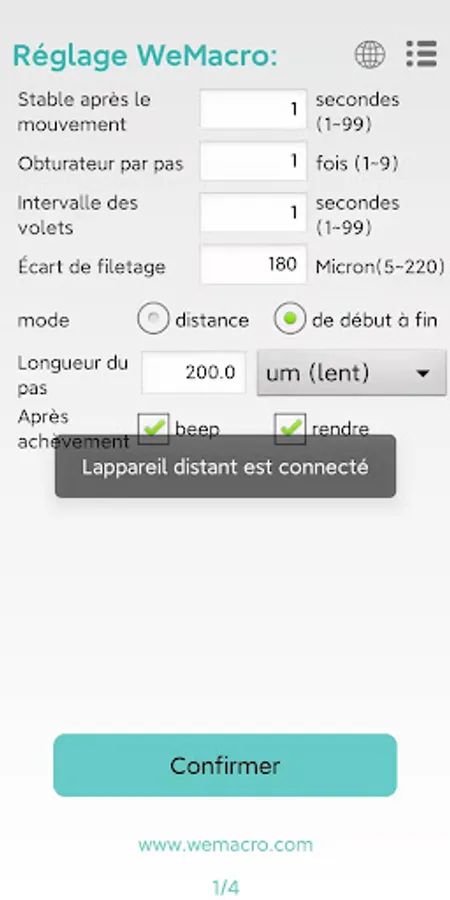 Use this app to control WeMacro focus stacking rail by Bluetooth communication. Provide 2 working mode:1 distance mode and 2 from start to end mode.