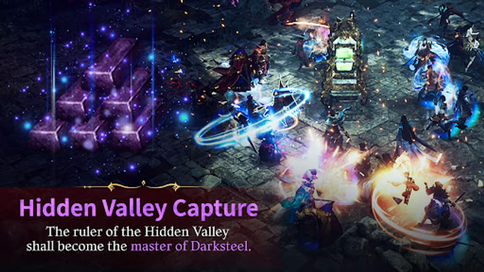 Hidden Valleys are the only places where players can obtain this core resource. Hidden Valley Capture decides the owners of such valleys. It is where the most powerful clans fiercely clash over the great interest of the rights to tax all Darksteel produced in the valleys, igniting the wars in MIR M.