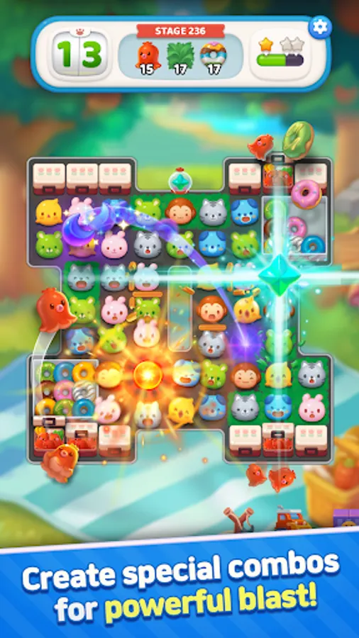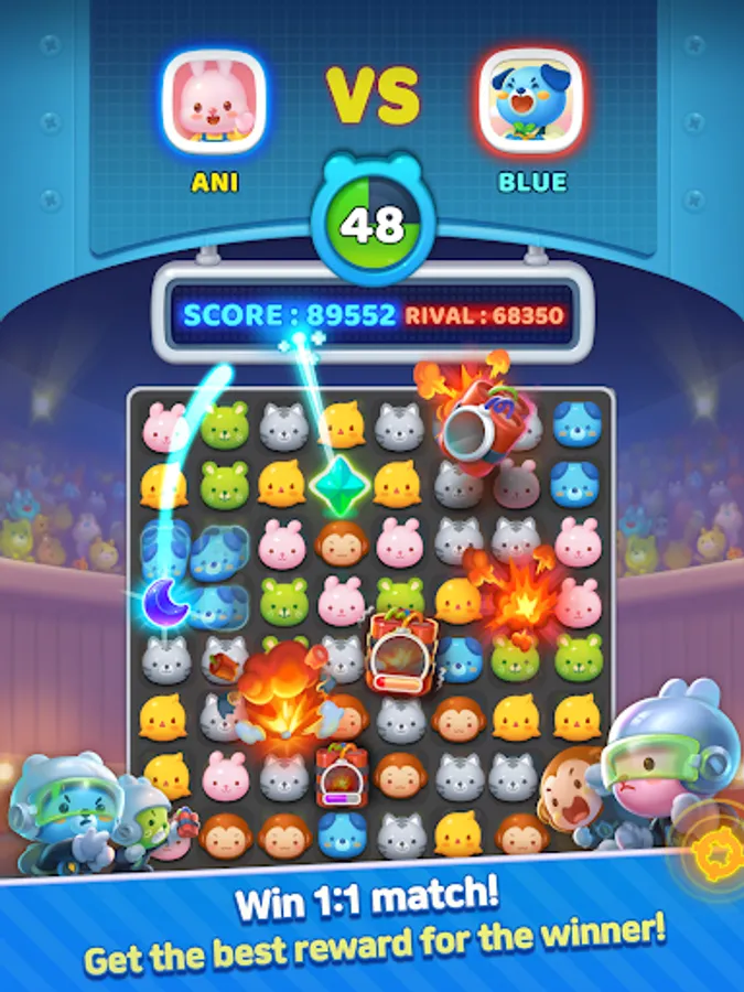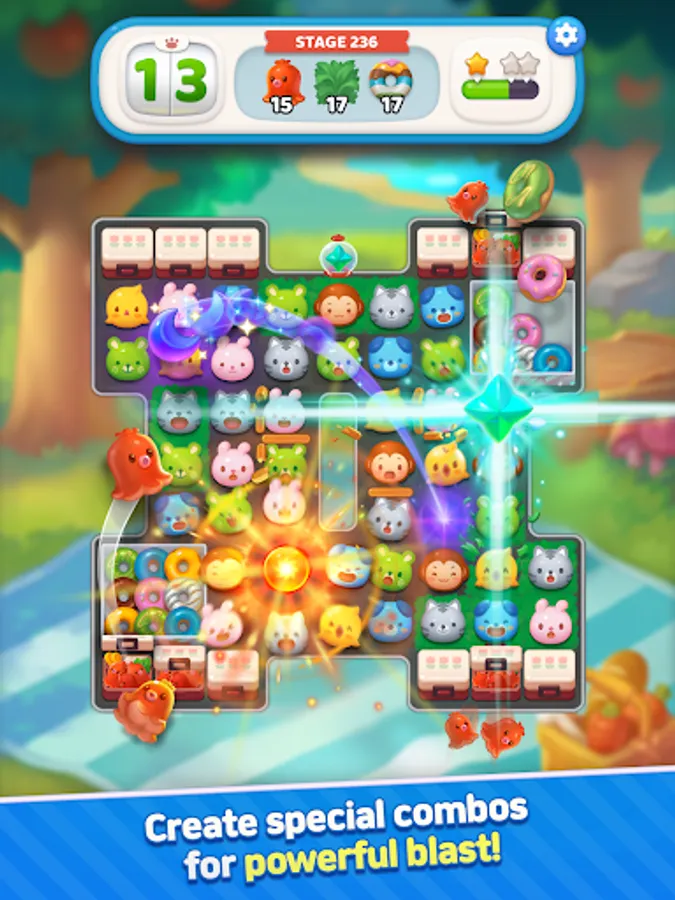 -Cute Match-3 Puzzle Game! Match Animal Blocks to get Special Combos!