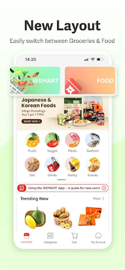 WEMART APP started up a new local life business, providing Asian food home delivery services.Download App to experience shipping fee reductions and daily red envelopes,enjoying delicious food while saving.We are enhancing every day and desired to creating more healthier and prosperous Local life market