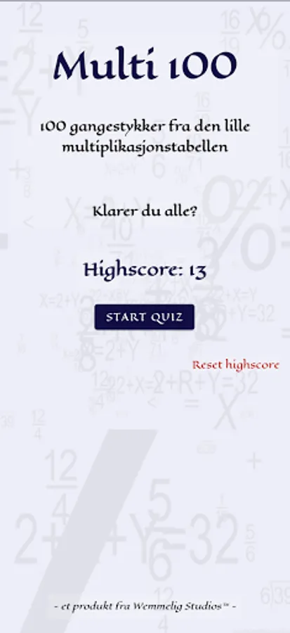 Multi 100 is perfect for practicing on the small multiplication table. 100 calculations, in random order. 10 second response time for each task.