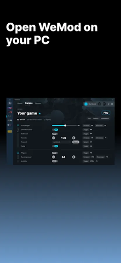 Connect WeMod Remote to your WeMod desktop app to get started today!