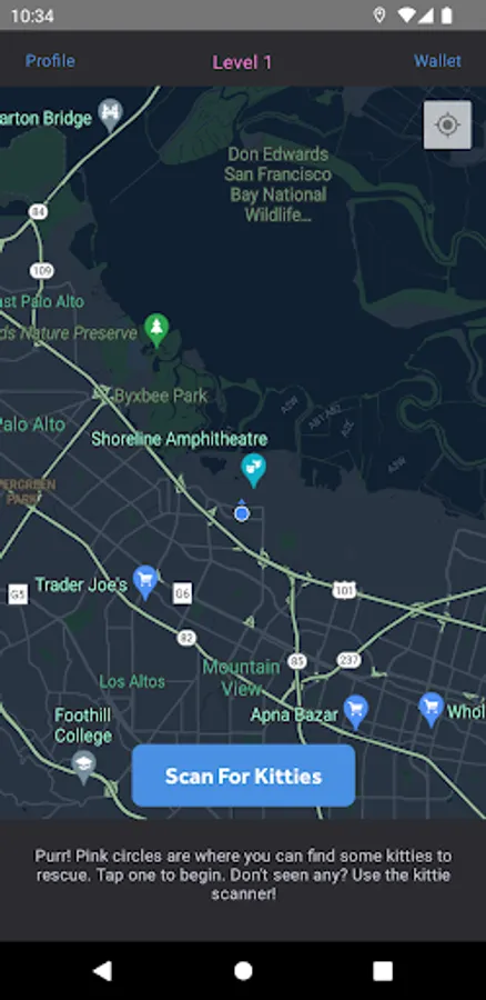Purr!! Time to save some kitties in your neighborhood! With our amazing Kitty Scanner you will find lost kittens that needs to be saved. As you get close to them, use Augmented Reality to rescue them. But you have to be quick, they run away after 30 minutes!