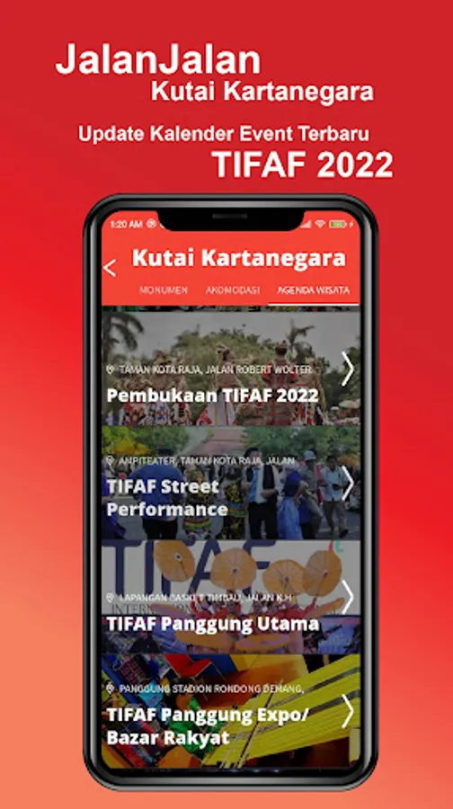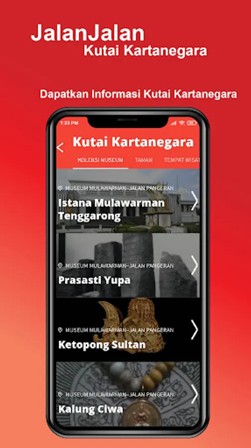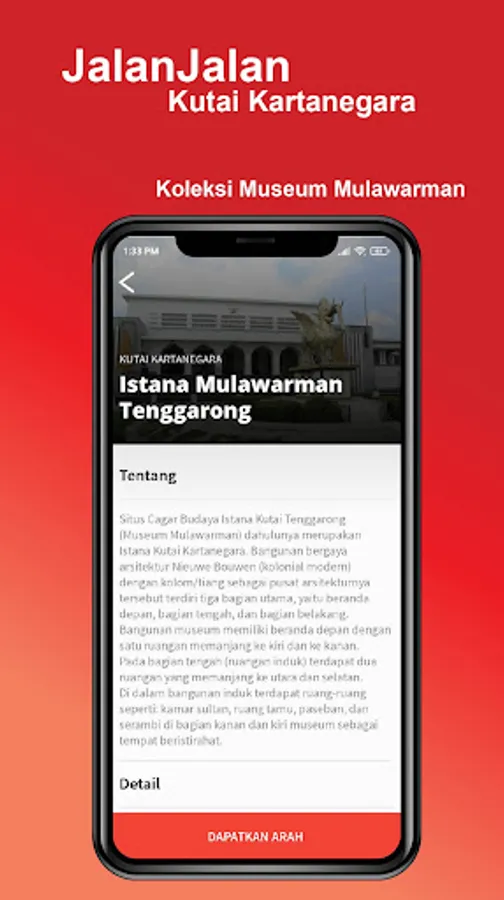 Make your vacation unforgettable by enjoying various tourist attractions such as museums, galleries, and traditional to modern art performances in Kutai Kartanegara. The calm beach atmosphere, the clear and calm atmosphere around the waterfall, and the hills soaring through the blue sky is a simple picture of paradise on the Equator. You can also find a hangout place to spend your beautiful evening in Kutai Kartanegara in an easy way through the JalanJalan Tour Guide application.