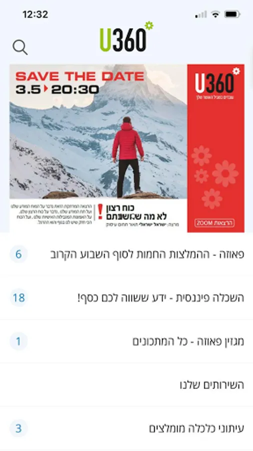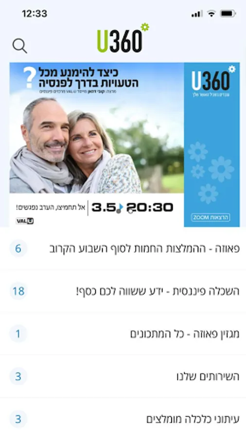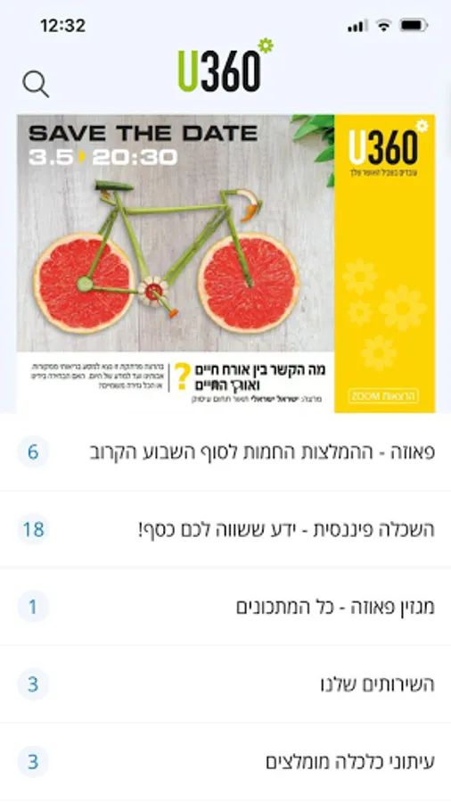 U360 establishes a consciousness of happiness by creating content, activities and services for the benefit of the working public in Israel.