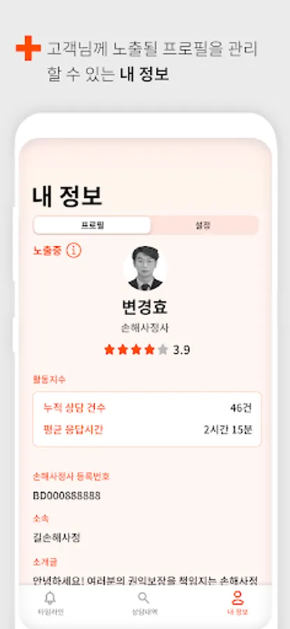 - When a customer of Bo-Sang Kim requests a consultation with a damage adjuster, a push notification will be sent to the damage adjuster.