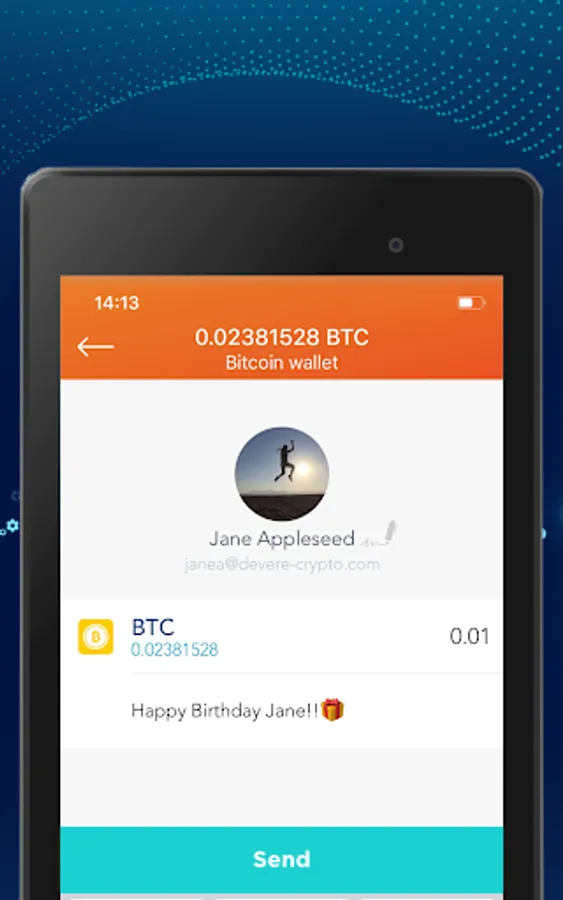 Send and receive any amount of Crypto, anywhere in the world, instantly. No banking hours, no hidden fees.