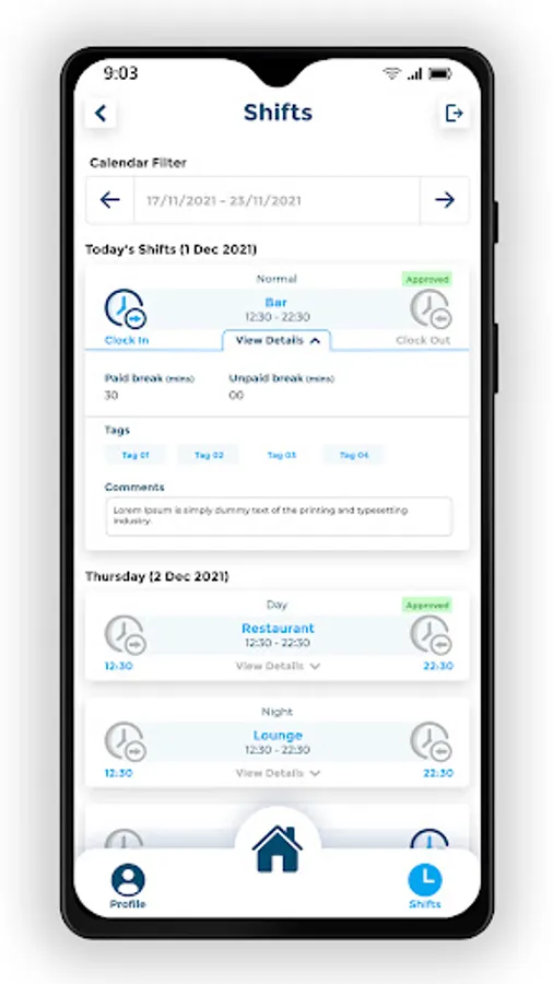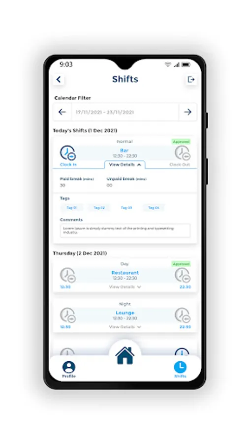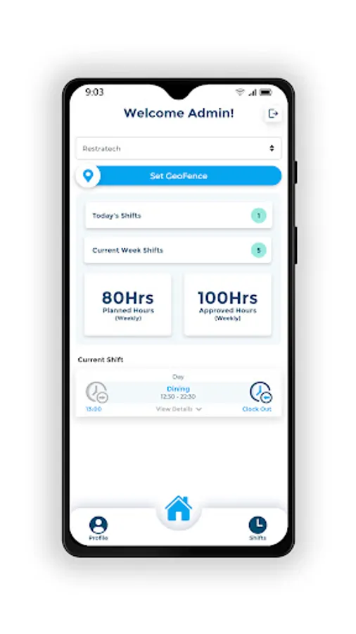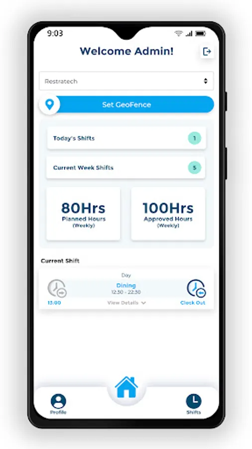 • It helps the employees to clock-in and out of the shifts assigned to them.