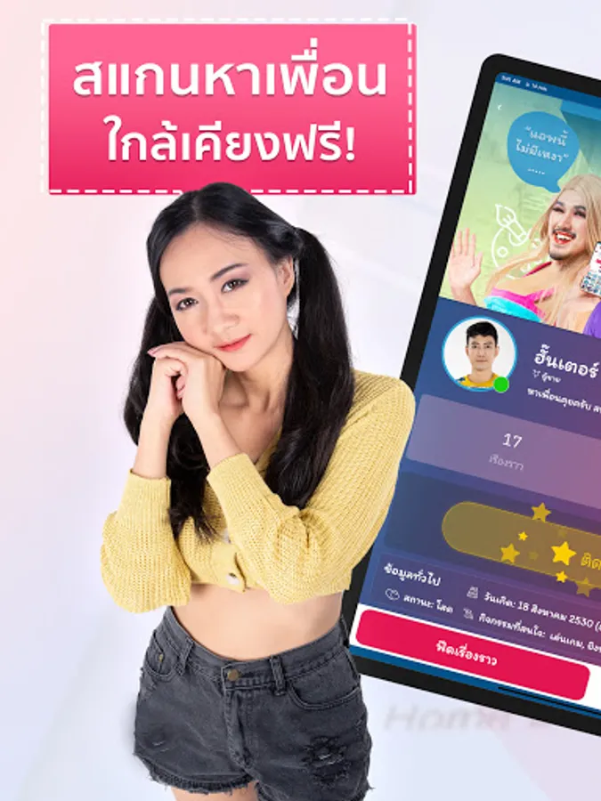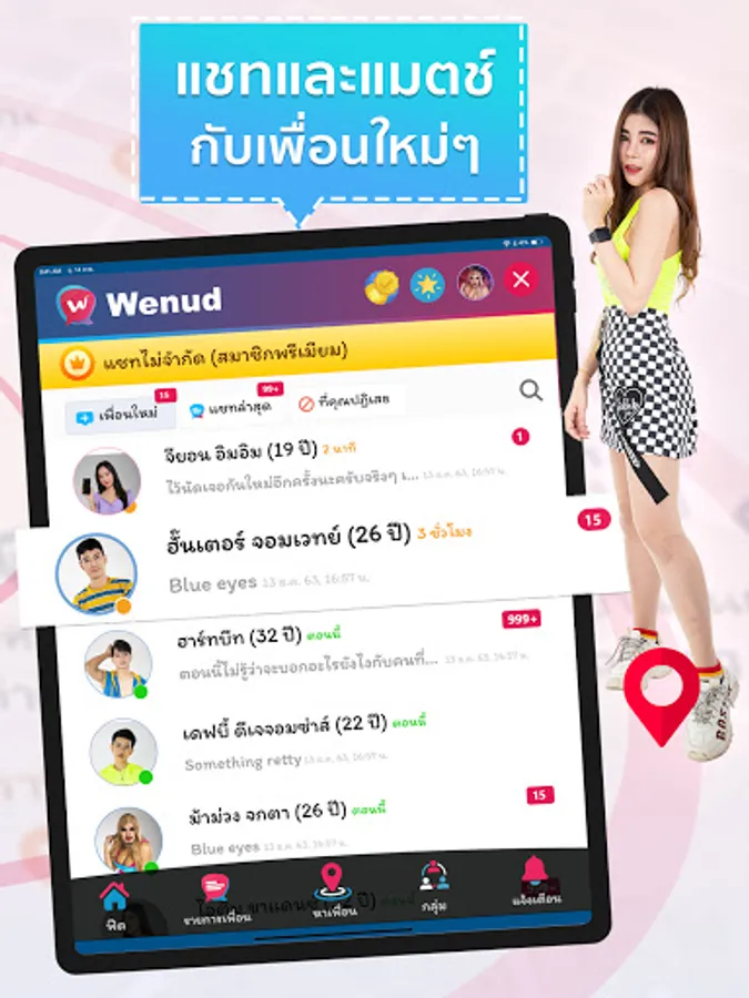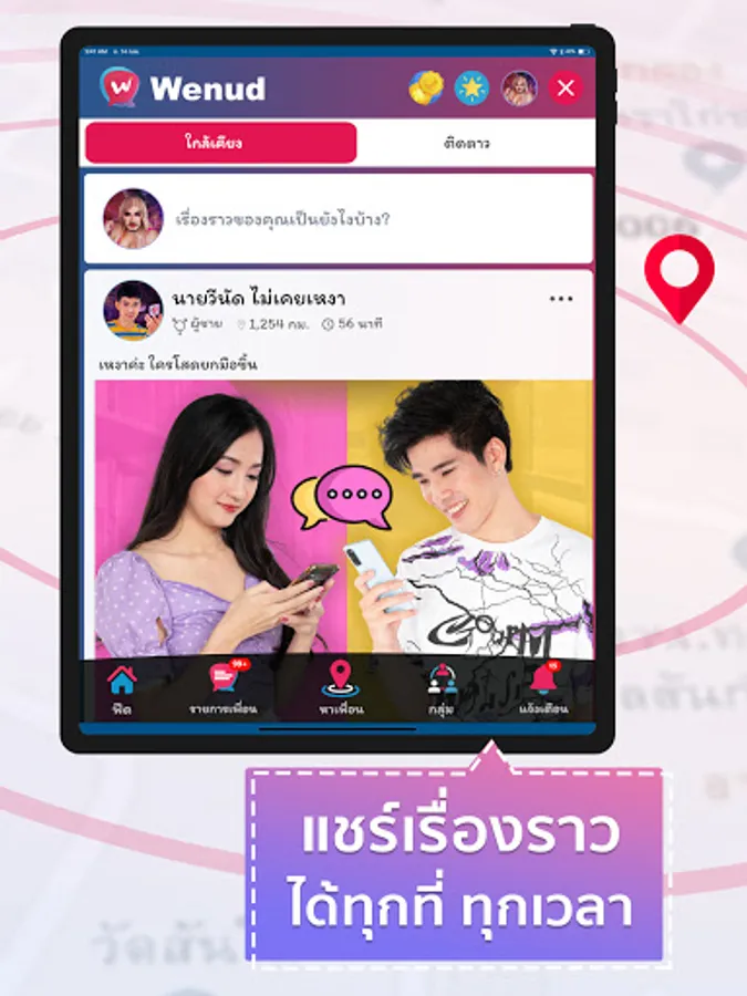 Popular free applications That will help you build relationships with new people nearby. Find friends, find a girlfriend, find a partner, find people to chat or go on a date. Find people near you. With function Beautiful and versatile, easy to use Scanning for friends in the same neighborhood with a GPS system that can accurately identify the location The proximity can be defined to help you find people you are interested in or meet in the same neighborhood as you.