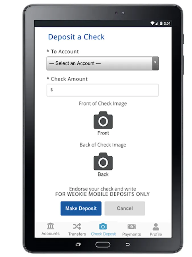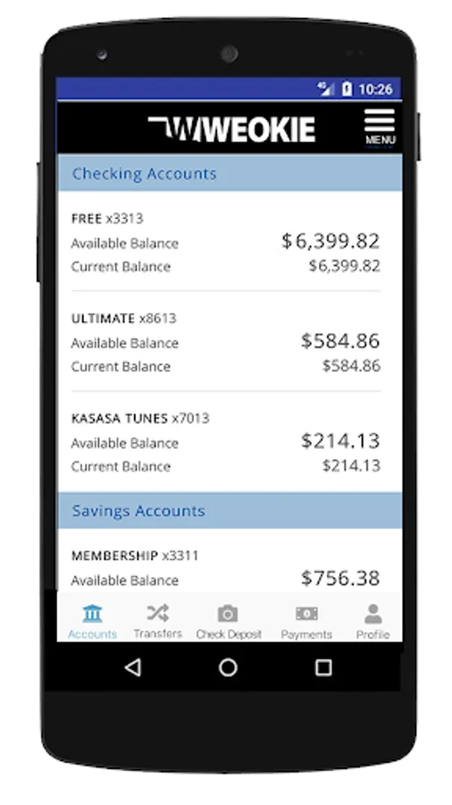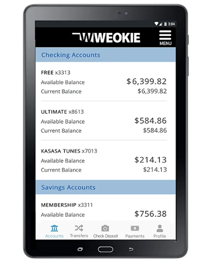 24/7 access to WEOKIE accounts. Make transfers, pay bills, deposit checks, check account balances. Login with Fingerprint. Total money management.