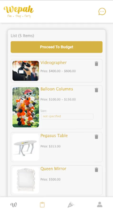 Wepah is a full-service party planning app! On the go or from the comfort of your home, users can create amazing parties with a few simple steps. You can find everything from cakes to DJs to party supplies, in order to throw a great party and have a bit of fun at the same time! Wepah offers clients the ability to plan a party themselves or work directly with one of our party planners. Payment is easy and secure. Stay organized, on budget and celebrate stress-free on the day of your event!