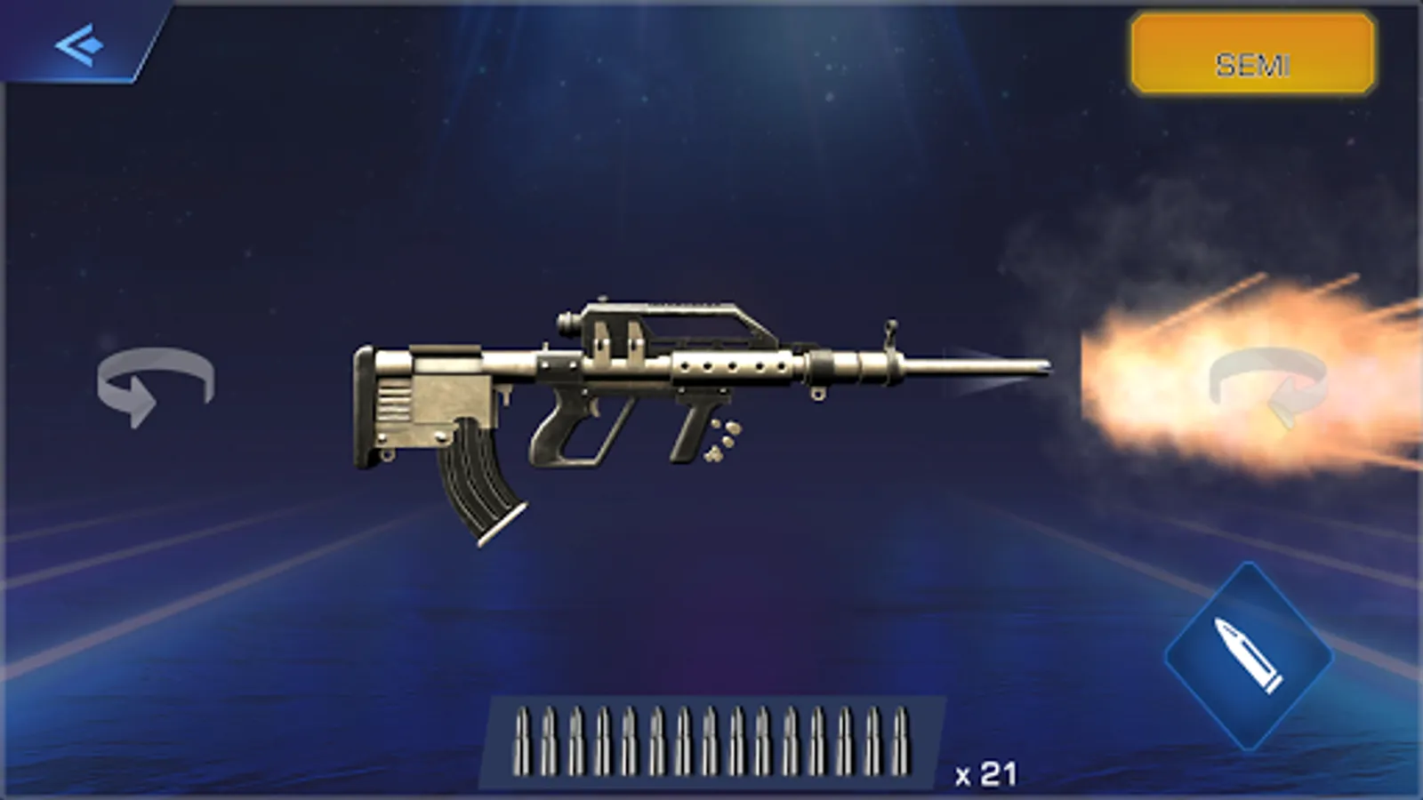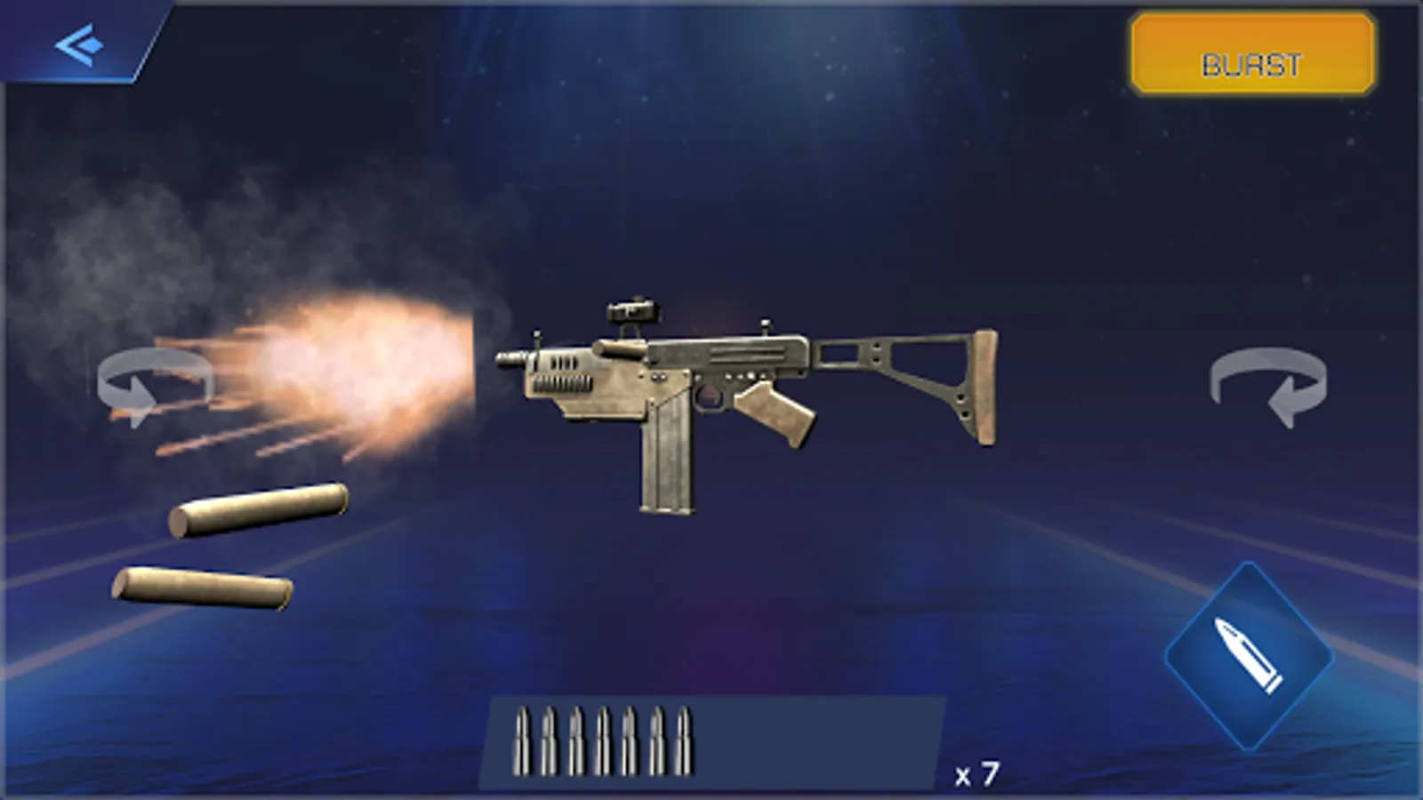 Explore a collection of realistic guns sound of 3D games weapon collection and choose any gun to hear the sound of gun, recoil and reload effects. Listen to rifle sound and other different gun sounds to serve your passion for warfare weapons.