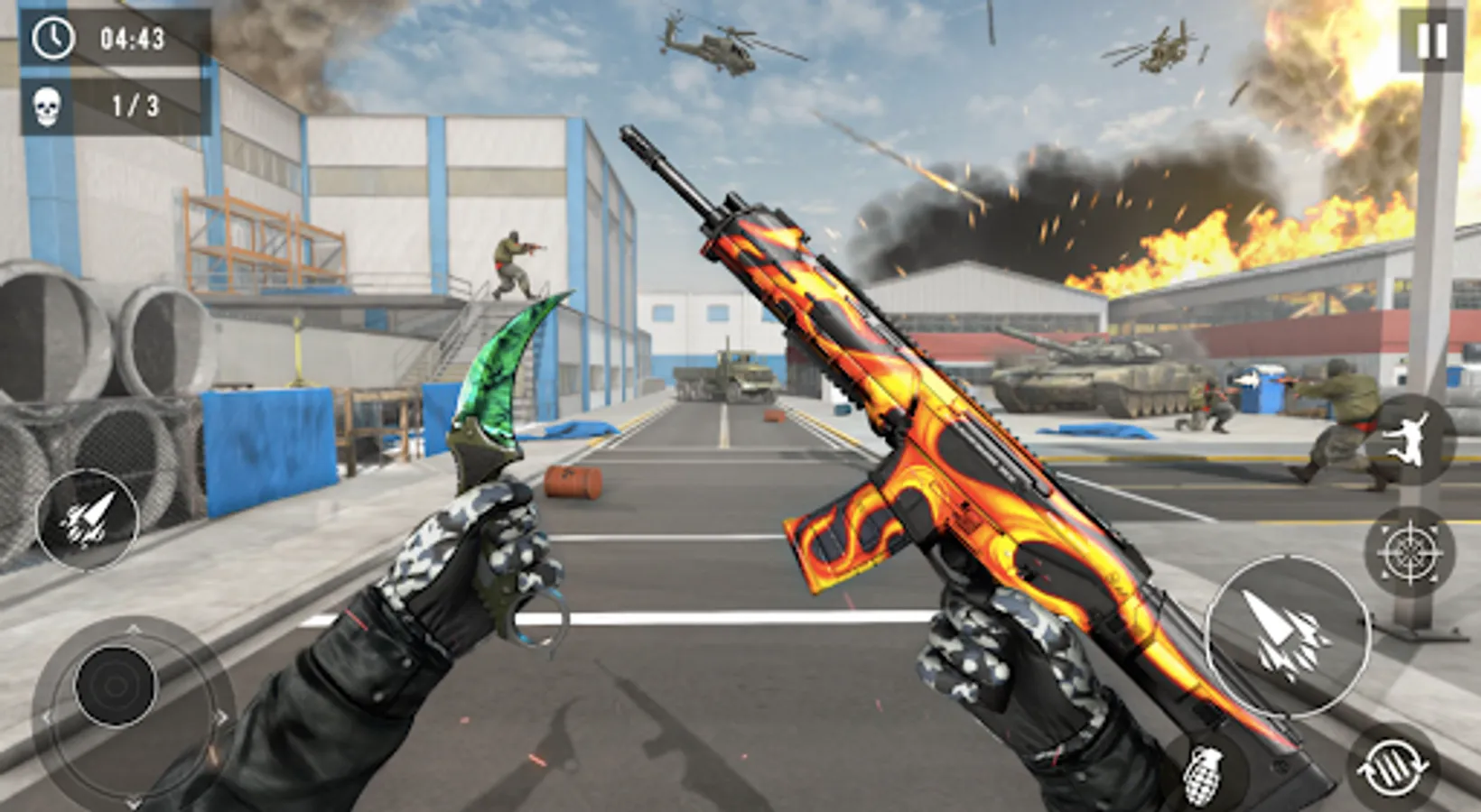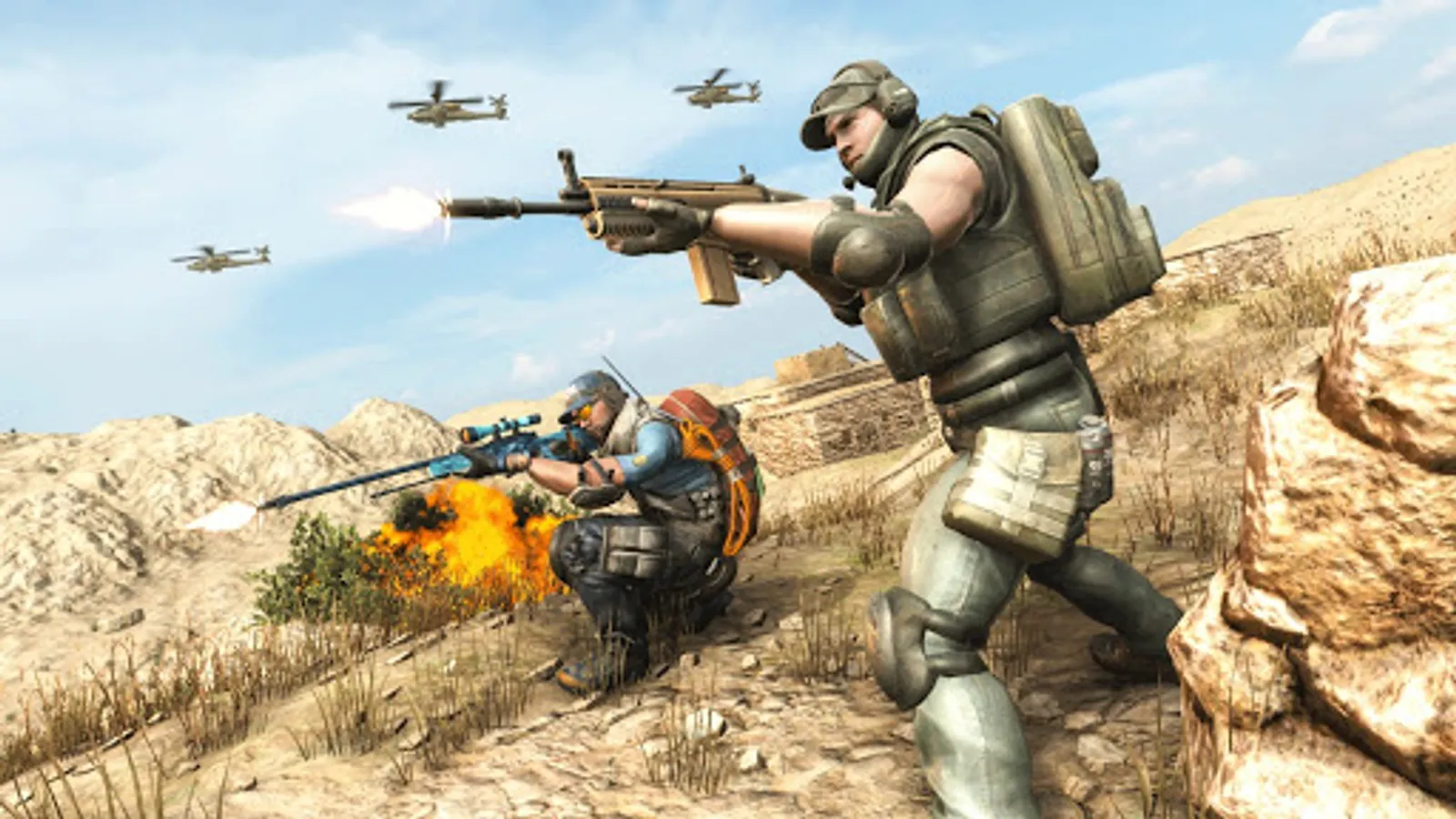 different mission in which skilled full enemies at the battleground with high efficient AI. You need to be careful and Shoot'em up to kill the enemies to win the critical war and get