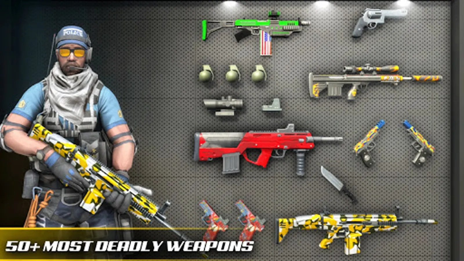 and polish you gun shooting and gunshots controlling skills. You can shoot targets and use all guns ideal for counter terrorist attacks for free.
