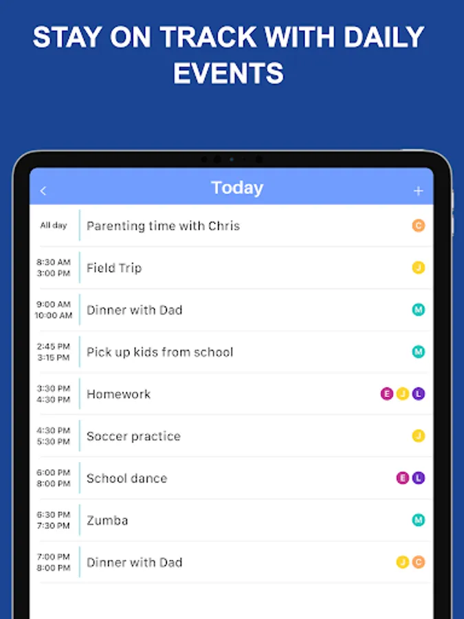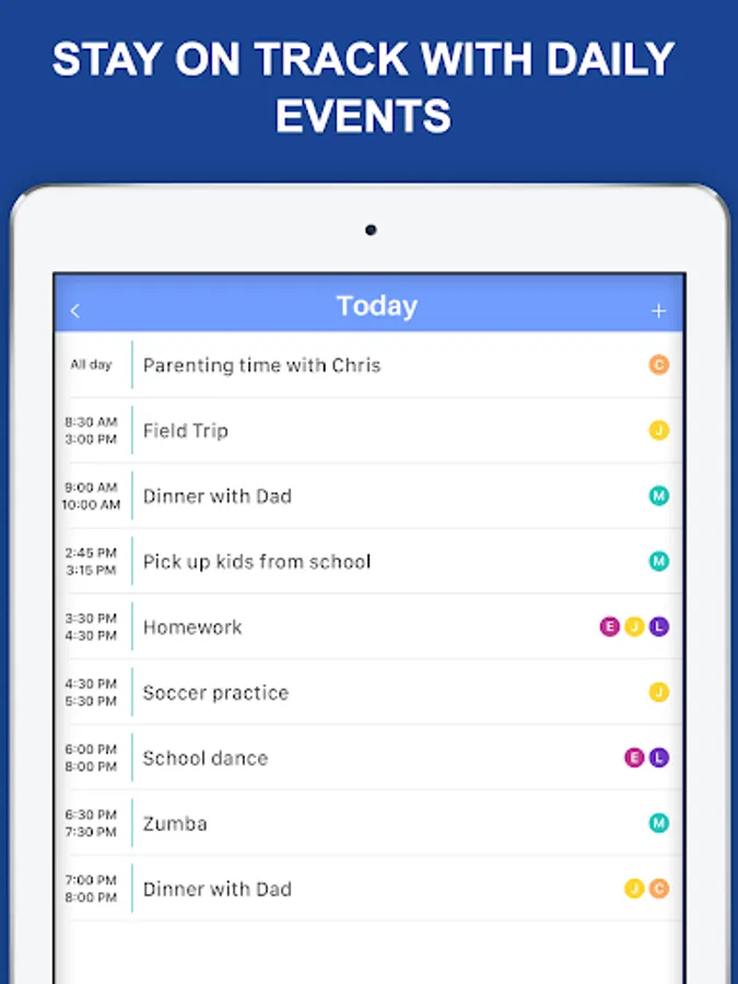 2. Family calendar. Add your kids’ school events, after-school activities, doctor appointments, and anything else you need to track. Your spouse or co-parent and any other family members that you invite will be able to see all of these events too and pitch in to help when needed.