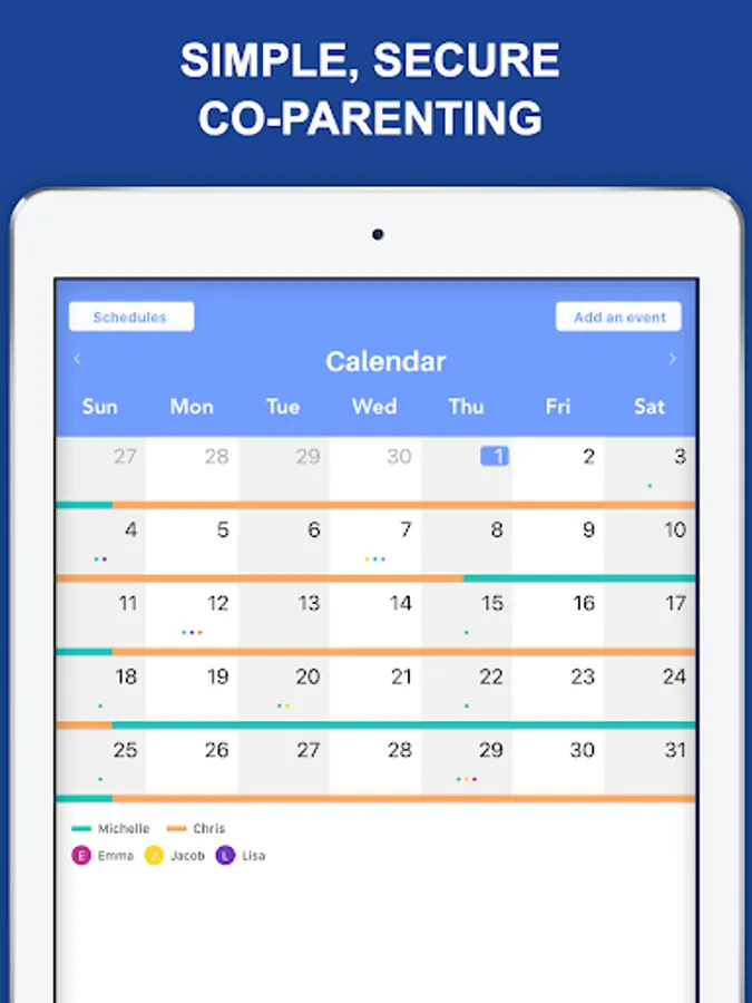 Manage your custody schedules 🧒, organize joint calendars 🗓️ and lists, share information, and exchange messages 💬 – all in one place.