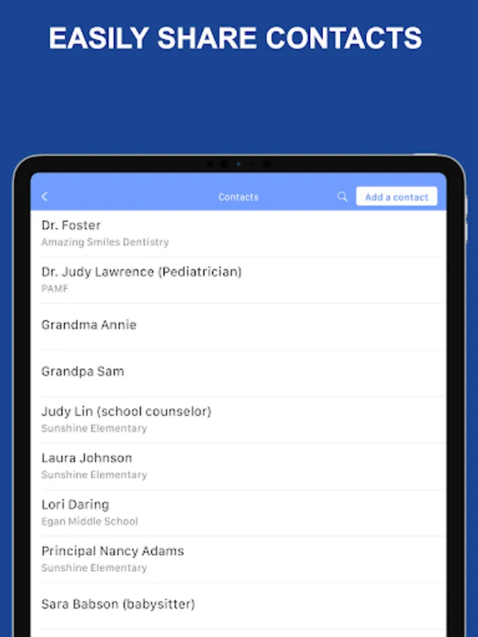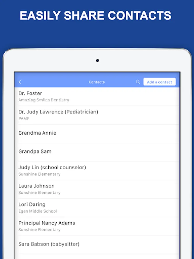 5. Important contacts and information. Share your kids’ shoe sizes, school report cards, immunization records or photos with your family members quickly, easily and securely. We integrate with your phone’s camera, photo library and contacts book (with your permission, of course), and keep a searchable archive of everything for easy reference.