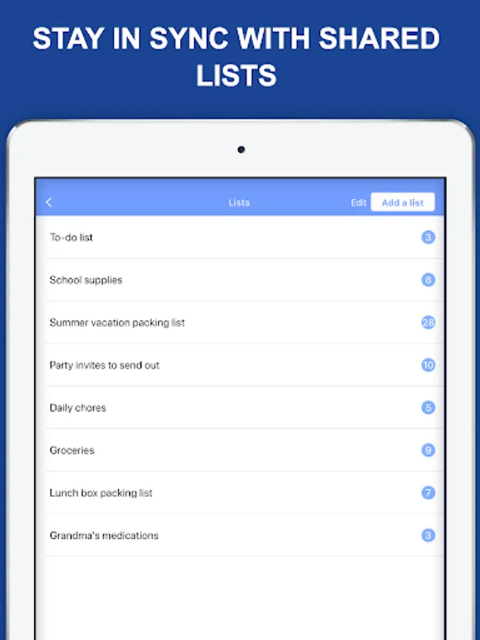 3. Shared lists, updated real-time. Use lists to create to-do lists, shopping lists, chore lists, packing lists, guest lists and more. Then check and uncheck items as you complete them. Your family will see the information updated in real-time.
