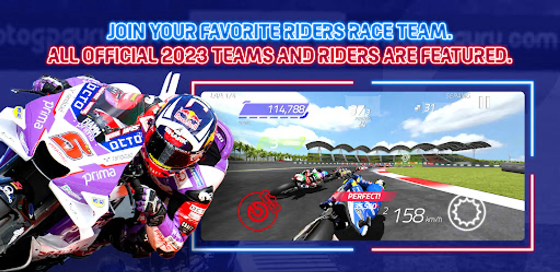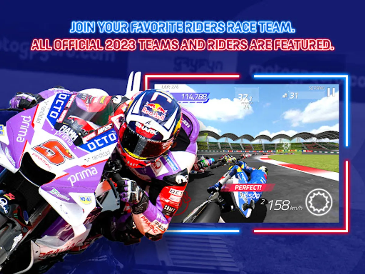 MotoGP 2023 Season Edition. Finally, a motorcycle racing game that keeps you on the track and focused on what wins races, TIMING! Timing on the brakes and timing on the throttle. Experience the intense racing action that is MotoGP. Race as your favorite rider and join them on the podium of the Fan World Championship, or customize your own bike and challenge your friends with the highest scores.